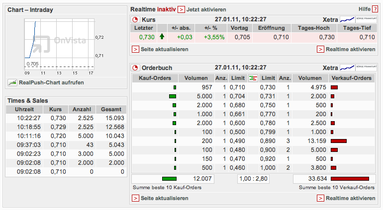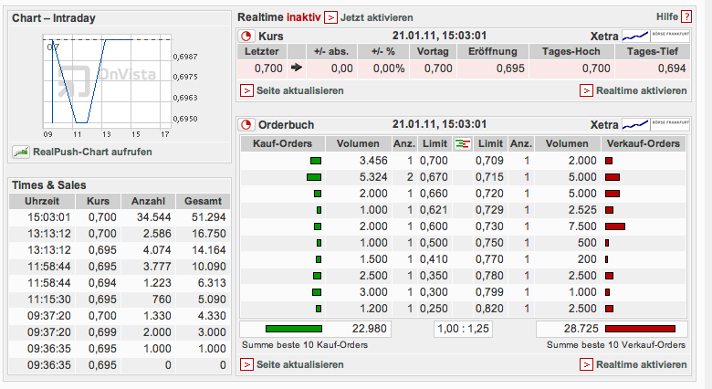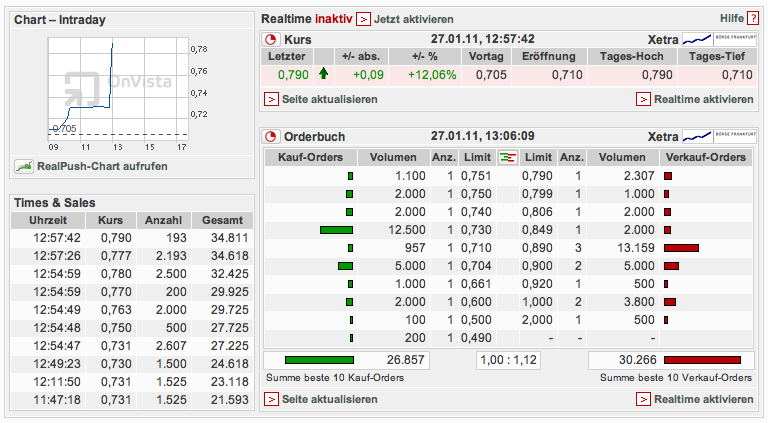 unter 0,70 werden größere order weggekauft