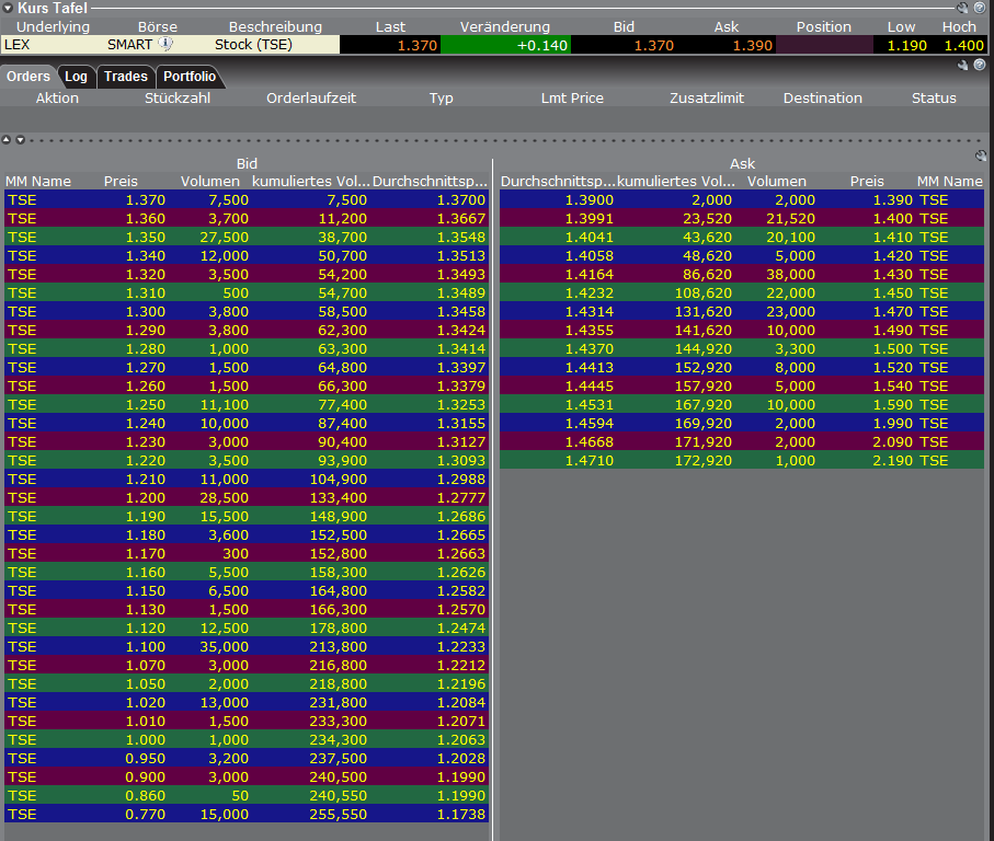 Aufgrund fehlender "billiger" Stücke wird der Kurs nun immer öfter auf das letzte Ask gesetzt. Sieht im Moment gut aus. Der Verfall um etwa 10 cent ist schon wieder Schnee von gestern. Nachfrage deutlich höher als Angebot ... der Abend ist noch jung. Ich schätze, dass wir heute ein Handelsvolumen von ca. 1 Mio. erreichen werden.