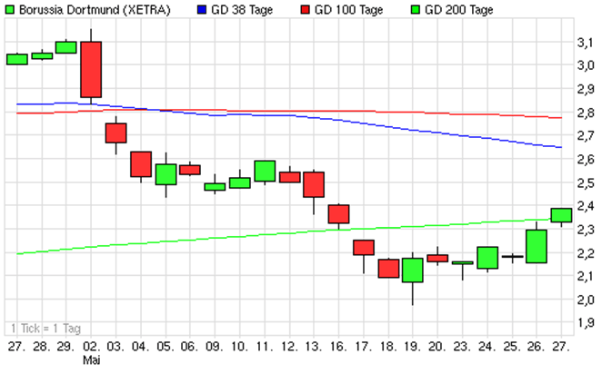 Längerfristig gesehen, hat diese Aktie auf jeden Fall noch Potential. Schwankungen, die aus sportlichem Erfolg oder Misserfolg resultieren, wird es aber immer geben.