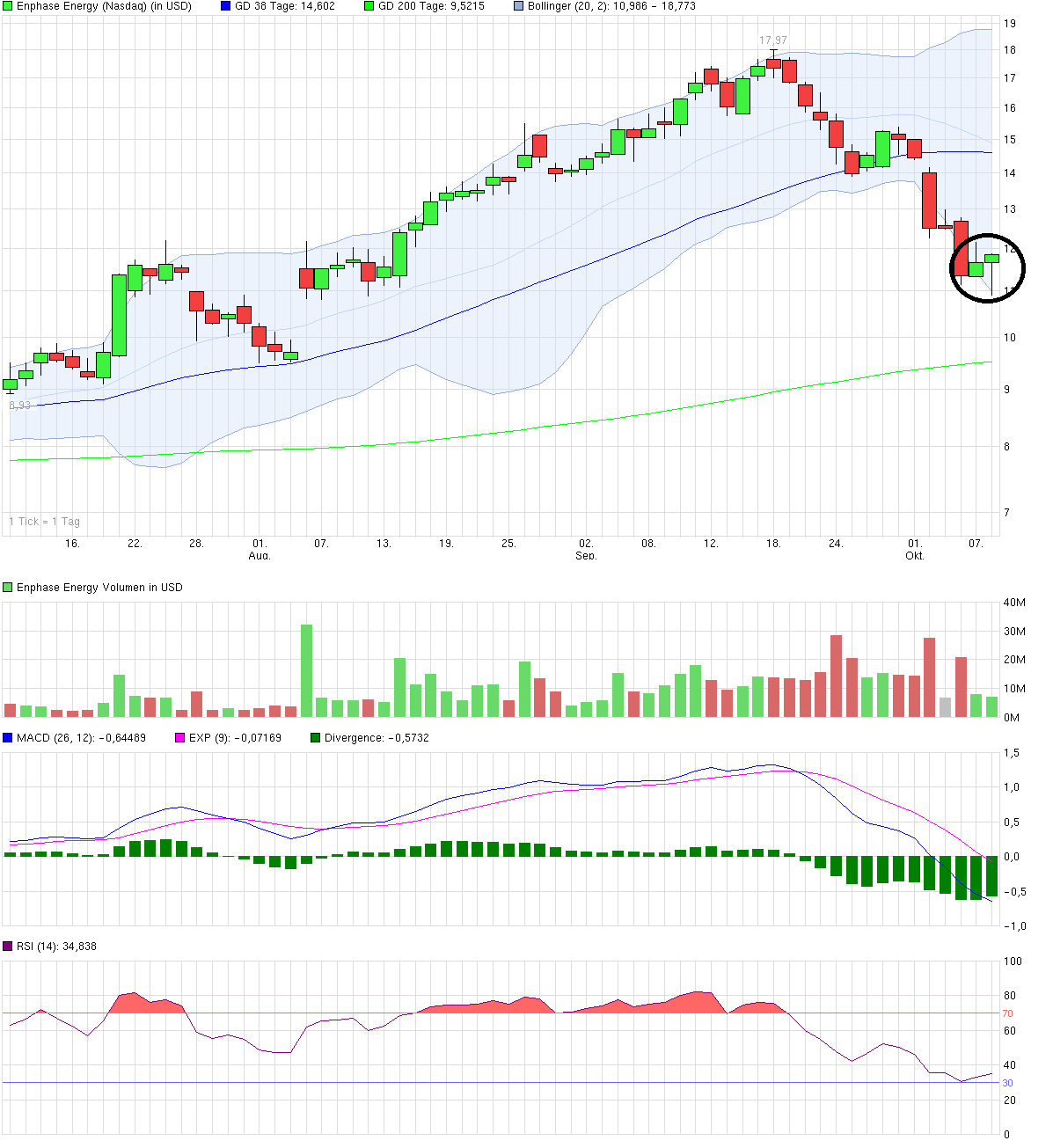 Da freut sich das Aktionärsherz. Heute hat der Kurs von ENPH die 10$-Marke genommen und steht aktuell bei 10,40 $ (7,69 €). Und dies trotz des aktuellen negativen Nasdaq-Trends von - 0,5%.