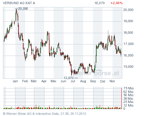 Bei der Bewertung des Verbunds im Vergleich mit anderen europäischen Versorgern ist der Verbund jedoch günstig bewertet. Auf Basis der Eigenkapitalrendite und des Kurs-Buchwertes wäre aktuell ein Kurs um die 20 € gerechtfertigt. Insofern gibt es noch Spielraum nach oben. Allerdings sieht es von der Charttechnik her nicht allzu rosig aus: Tendenziell geht es mit der Aktie weiter abwärts. Und die zu erwartende Dividendenrendite ist vorerst ebenfalls kein Argument, sich für den Verbund zu begeistern. Wer allerdings langfristig orientiert ist und auf einen Konjunkturaufschwung in der zweiten Jahreshälfte 2013 hofft, kann langsam anfangen, den Verbund ins Depot zu legen. Allerdings muss man einkalkulieren, dass es mit der Aktie eventuell noch ein wenig abwärtsgeht, bevor die Erholung einsetzt. Daher ist der Verbund aktuell für konservative, längerfristig orientierte Anleger geeignet.