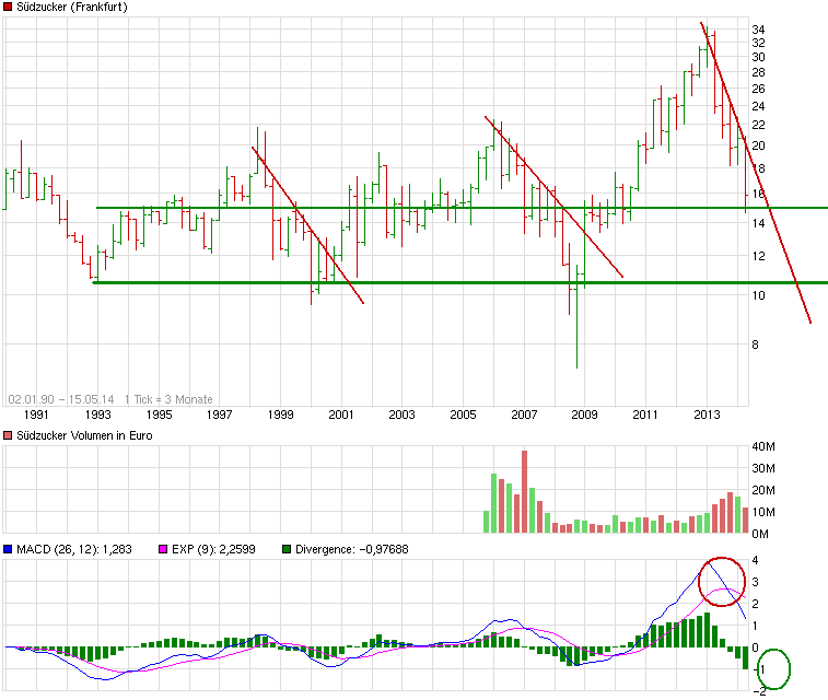 In diesem Fall 'will' der Markt einfach, daß Südzucker fällt.