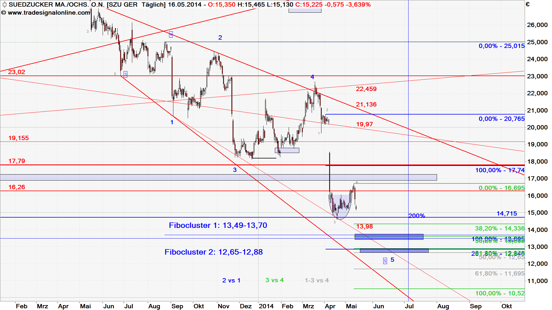 Ich denke mit der Dividendennews sehen wir nochmal ein neues Tief in der Südzucker Aktie, ich hab bei mir im Chart 2 Unterstützungszonen, die sich durch Fibocluster ergeben.