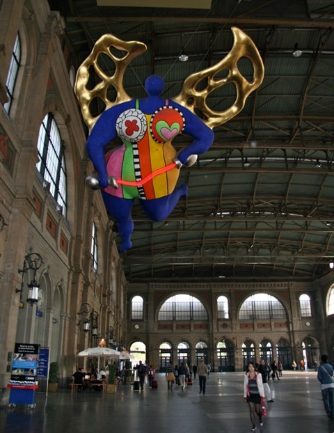 Zum Thema Gold in der Kunst heute eine "Nana" von Niki de Saint Phalle, die als Engel mit goldenen Flügeln die Reisenden auf dem Züricher Bahnhof auf ihrem Weg begleitet.