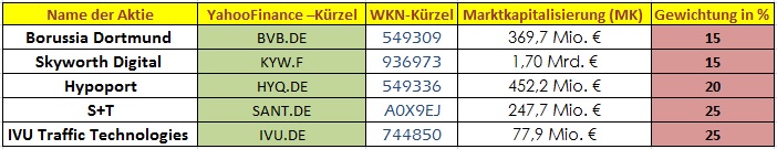 Meine Favoriten stehen noch nicht ganz. Werde mein Depot später melden. Habe 10-15 Werte, denen ich ein starkes Börsenjahr zutraue. Daher ist die Auswahl in diesem Jahr besonders schwer für mich. Balda, Aareal Bank und L&S fallen leider raus, da ja Dividenden nicht berücksichtigt werden. Hatte noch nie so viele potenzielle Favoriten für das nächste Börsenjahr wie aktuell... Auf jeden Fall aufstellen werde ich wohl BVB und IVU.