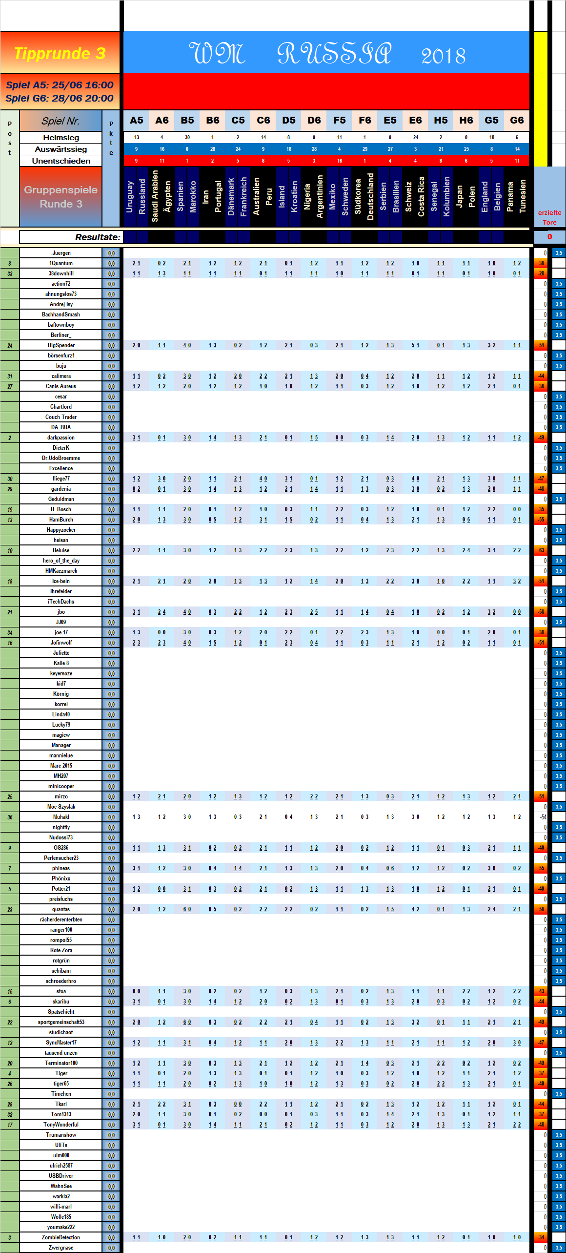 1:1 (Gr.A) Uruguay URU-RUS Russland (Mo, 25.06.2018, 16:00)