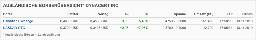 P.S.: Es wurden auch wieder Aktien von Dynacert an der kandadischen Börse NSX gehandelt: 3.000 Stück am 02.12.2019