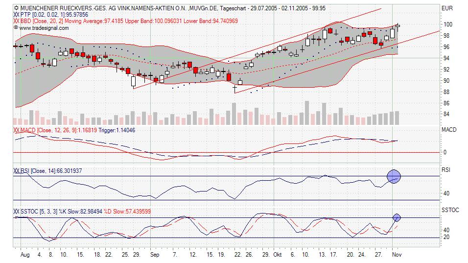 MüRück + BMW So heute gingen seit langem die ersten Aktien für 100 € und mehr über den Tisch, es war ja eigentlich­ nur eine Frage der Zeit, MüRück hat einfach noch gegenüber den Dax + Allianz aufzuholen­. Wenn der Markt mitmacht, sehen wir bald Kurse um die 105 €. Ich habe ja meinen Gewinn bei MüRück erstmal mitgenomme­n aber werde die Aktie dieses Jahr bestimmt nochmal traden ... Momentan würde ich aber auf kleine Korrektur warten - könnte aber weiter rauf Richtung 102 - 103 € gehen vorerst solange der Markt mitspielt - Die Amis tun´s ja heute zumind. bis jetzt!