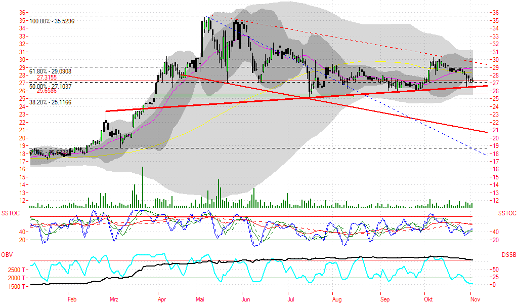 Indis auch zieml. unten, hier muss mit einem erneuten Versuch auf der Oberseite gerechnet werden! Ziel 29 € drüber 30 € + X