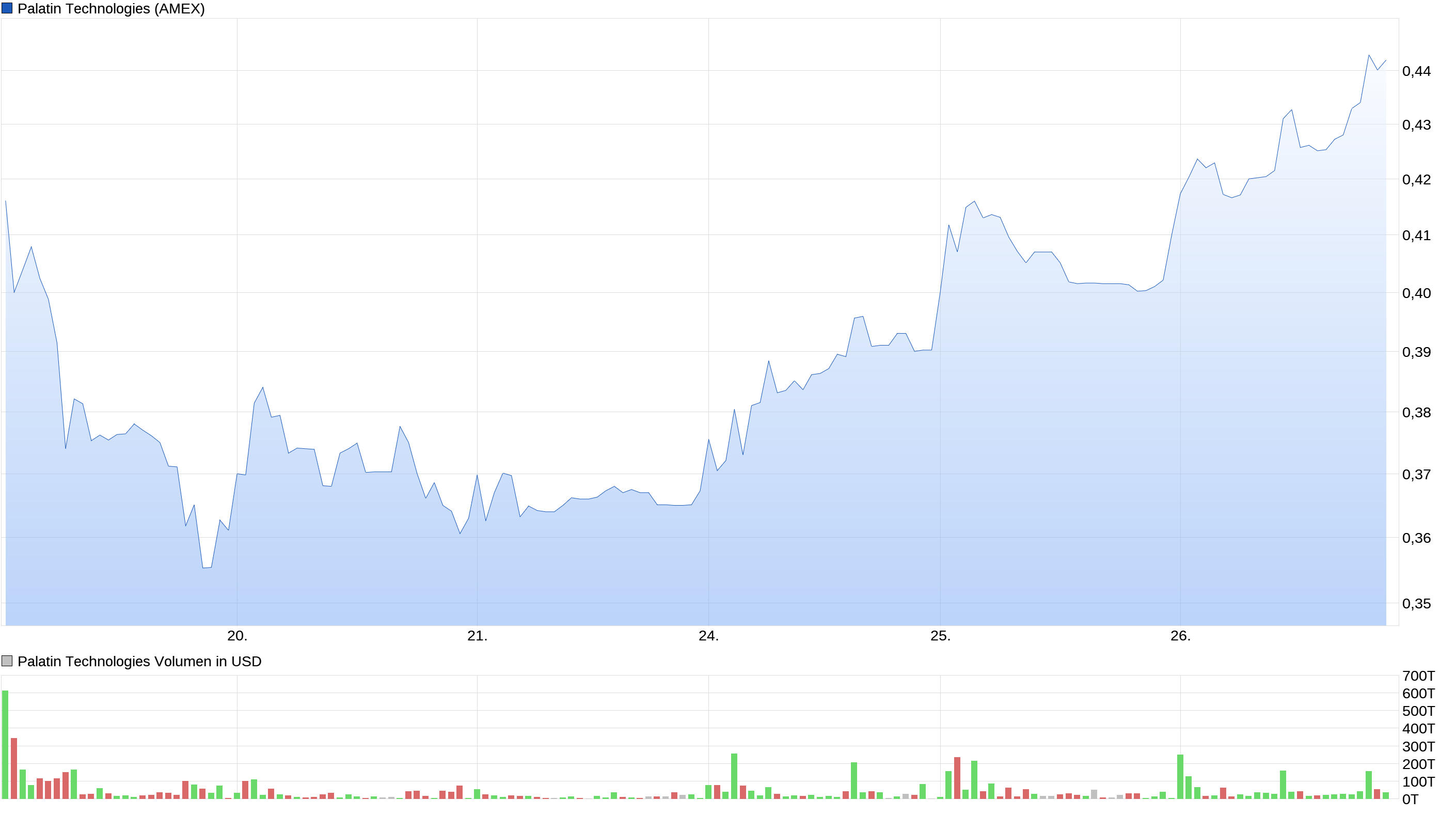 Bei einem Kurs von 0,4250 $ (Stand 19:26 Uhr) wird PTN damit mit aktuell knapp über 107 Mio. $ bewertet (unter Einbeziehung der warrants).
