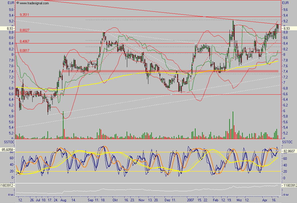 Ich verkaufe meine Aktien nicht, da ich glaube, dass das Chance/Risikoverhältnis weiterhin bei Süss ganz gut ist. Warten wir mal die Quartalszahlen ab, vielleicht sind sie schon der Auslöser für eine Rally auf 10 € + x. Oder einfach charttechnische
