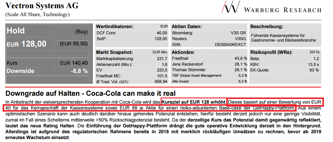 Am Ende des Jahres 2017 will er die Sache mit Gethappy eventuell neu beurteilen. Hm, im Herbst machen sie eine riesige Werbeaktion, wenn der Aktienkurs dann krass höher stehen sollte, macht Warburg dann eine neue Analyse, aber wieder viel zu spät???