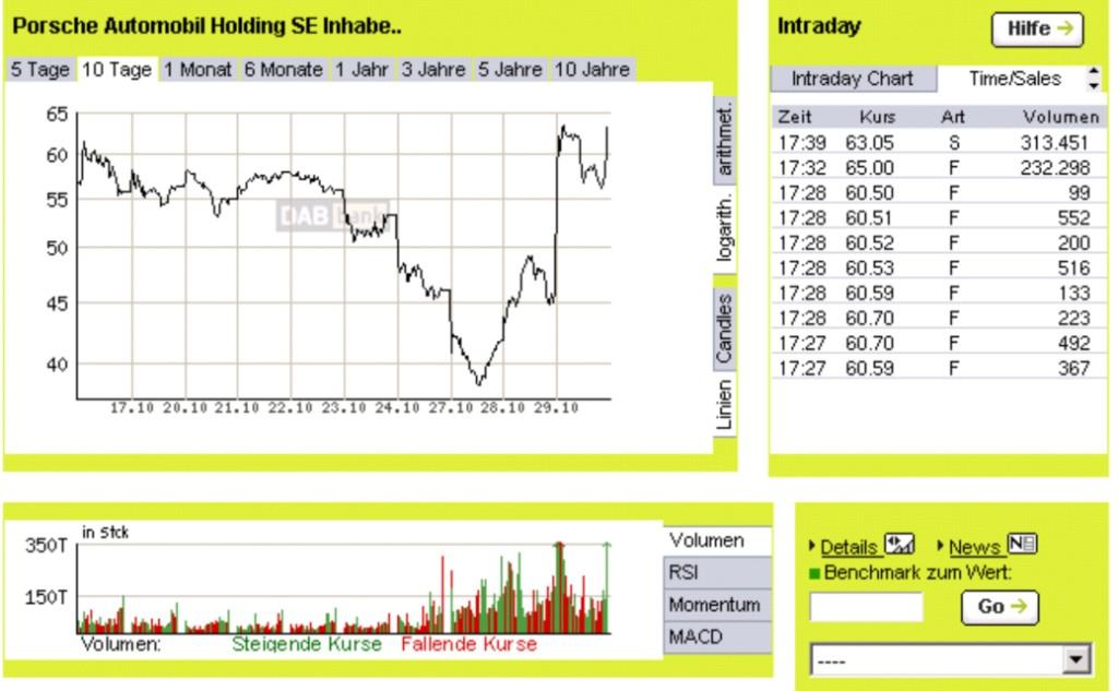 Was für die Banken perfekt war, war natürlich für Porsche ein Problem. Diese Halbierung des Aktienkurs von Volkswagen bis Freitag letzter Woche konnte Porsche natürlich nicht gefallen. Vielleicht hat Porsche aber auch direkt von dieser Aktion der Banken Wind bekommen. (Unter Umständen hing Porsche sogar mit den Banken unter einer Decke – wer weiß.) Porsche musste auf jeden Fall dringend handeln, weil ihnen durch die Kursverluste ein erheblicher Gewinn wegbrach.