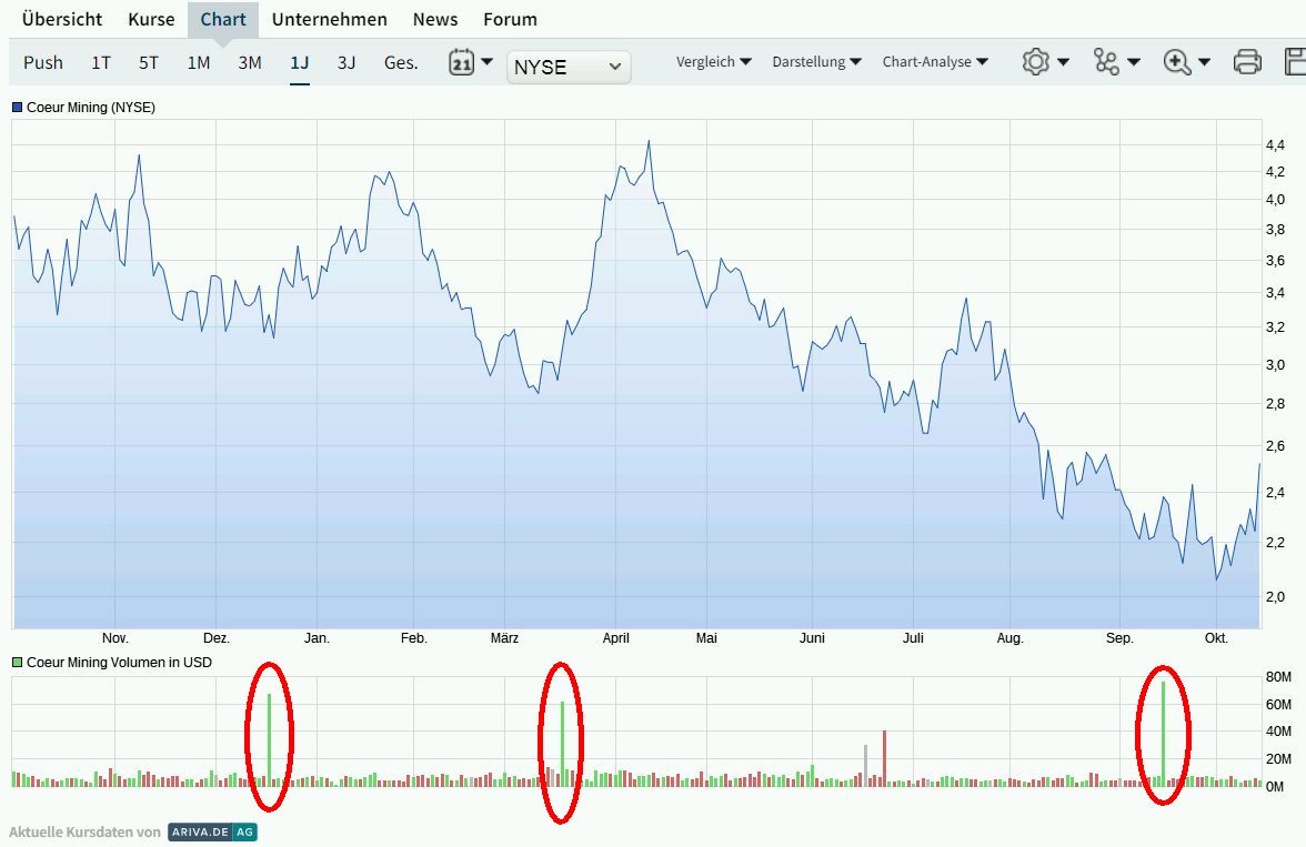 Dafür das Coeur beim Aktionär eher selten gebracht wird und auch nicht in deren Minenkorb ist kam der positive dezente Hinweis auf Coeur. Früher hat er oft abgeraten ohne näher drauf einzugehen. Auch diesmal konnte er sich Risiko-Kritik nicht verkneifen. Aber im ganzen ein positiver Punkt.