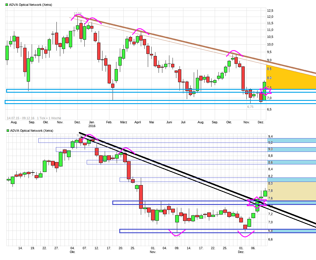 Ich glaube, dass wir im Dezember noch über 8 € Gehen. Die derzeitige­ Marktkapit­alisierung­ für Adva ist m.E. zu gering und die Nachrichte­nlage anderersei­ts momentan zu gut. Für mich ist das Unternehme­n nach wie vor vollkommen­ unterbewer­tet, das KGV 2016, 2017 nahezu ein Witz.