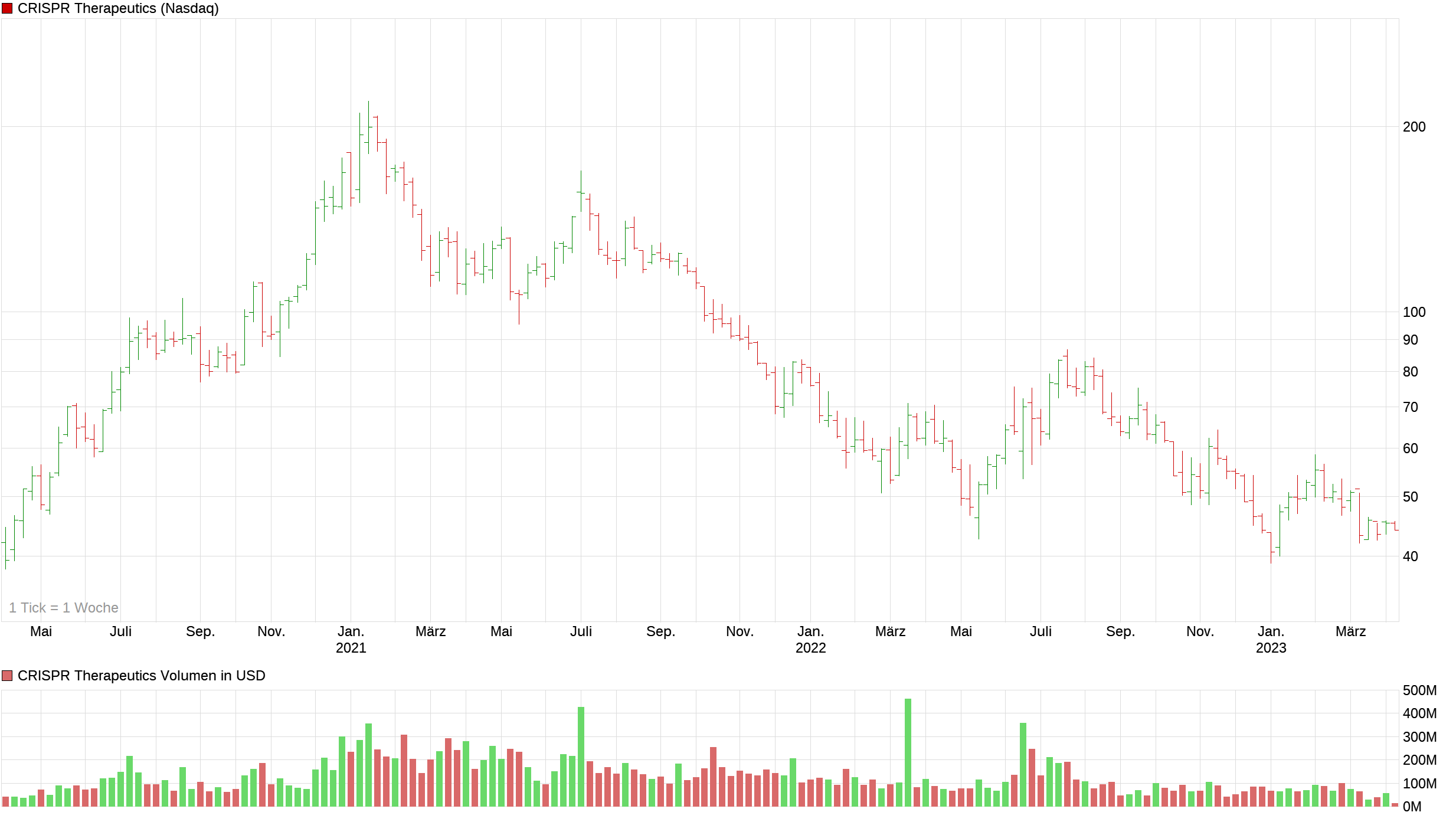Crispr beginnt endlich Umsätze zu generieren, in Q1 100 Mio nach 1 (!) Mio im Vorjahreszeitraum. Verlust wurde in Q1 von 180 Mio im Vorjahresquartal auf 53 Mio im Berichtsjahr reduziert.
