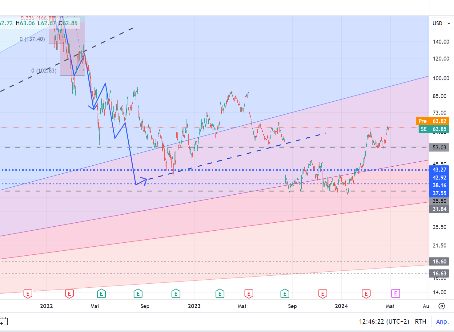 da will man die Aktie über den 52-55 Bereich nicht rauslassen