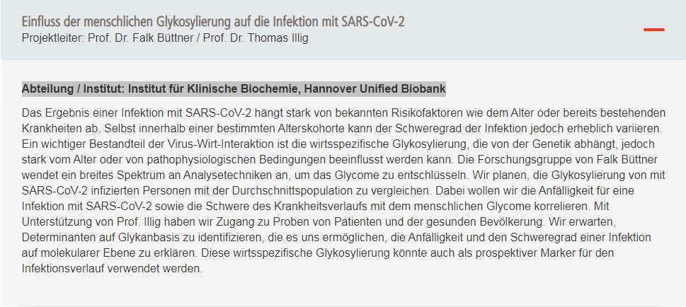 MHH Projekte Glykosylierung Verbindung Sars-Cov-2