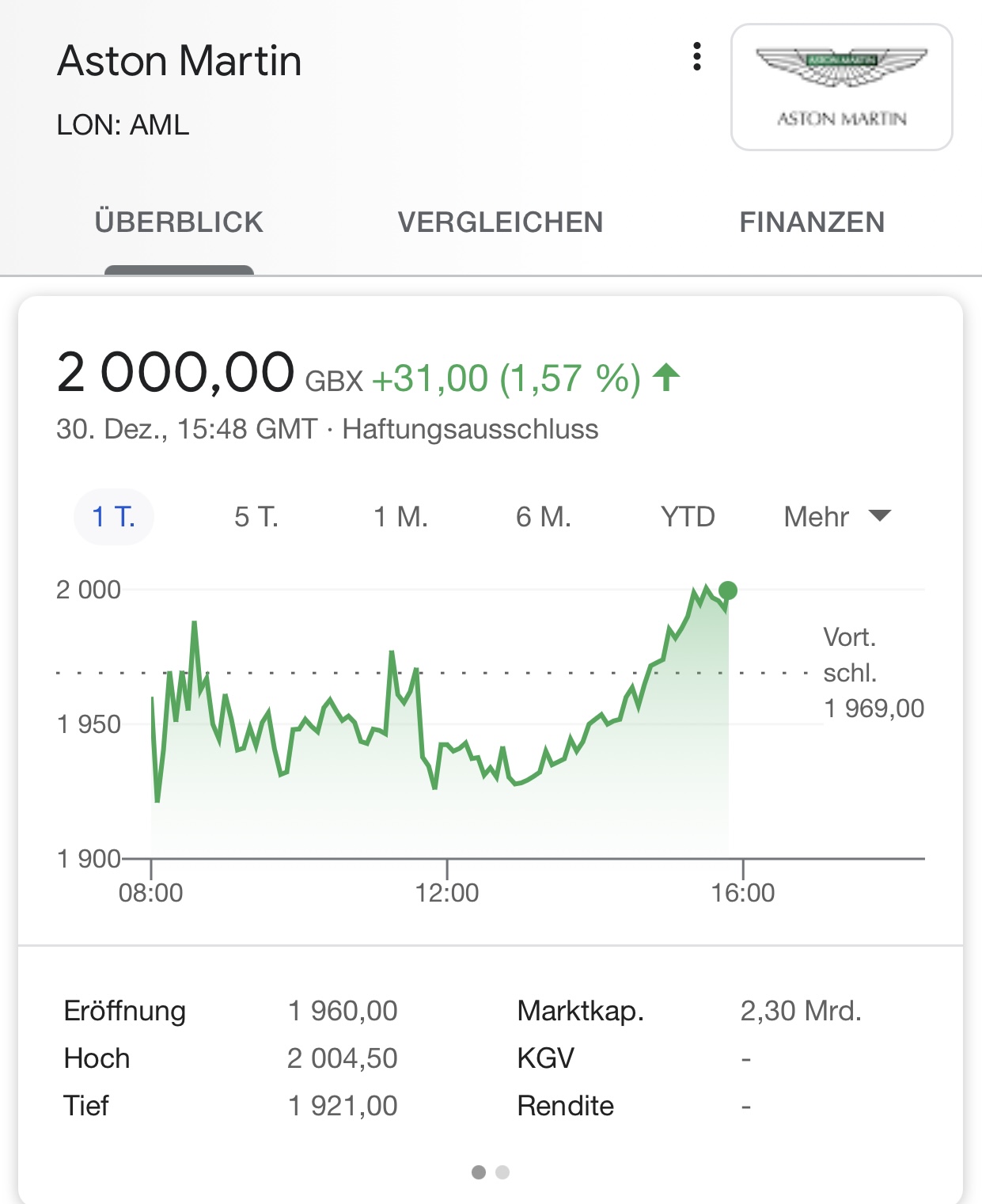 WKN: A2QJD4 / ISIN: GB00BN7CG237Aston Martin (WKN A2QJD4)