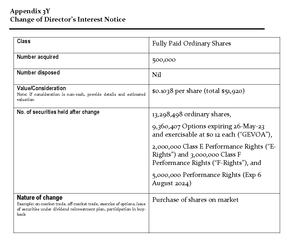 SYDNEY, 20. April 2022: Global Energy Ventures Ltd (ASX: GEV, das Unternehmen) freut sich, folgendes bekannt zu geben