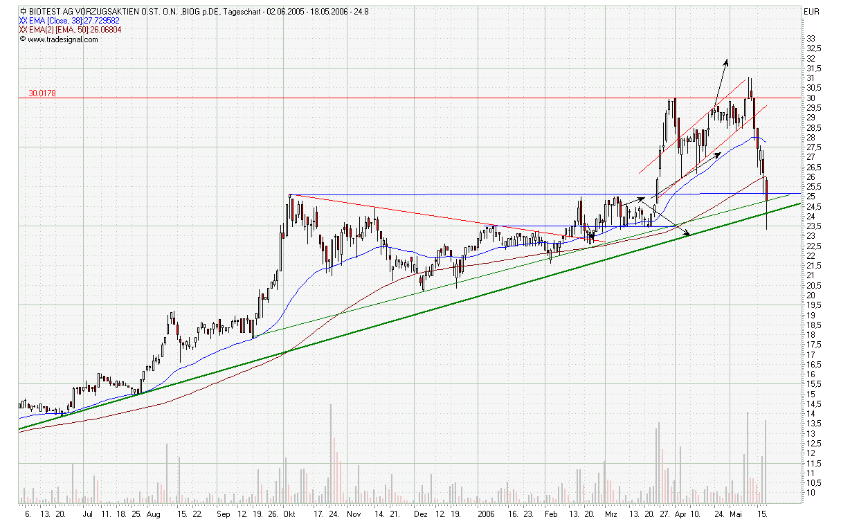 schwungvoll unter starken Umsätzen Aufwärts. Am 11.05 ist HV daneben werden die Zahlen für das Q1 06 bekannt gegeben.