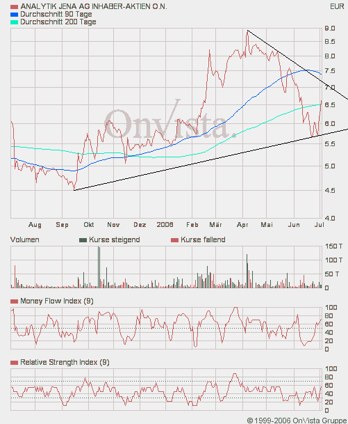 also der bereich um die 7 wird definitiv nen rückpraller geben, da geht kaum im ersten anlauf durch. schätze der rücksätzer wird dann bis 6,50 gehen. das wäre dann, wenn noch cash da is, der ideale zeitpunkt zum nachlegen. und dann könnten wir schon in vielleicht 2 wochen die 90er und somit den 7,50er widerstandsbereich in angriff nehmen. dann wäre auch der kurzfristige abwärtstrend nachhaltig geknackt. wird spannend, bin aber total zuversichtlich, der moneyflow und die momentane orderlage gebens allemal her!
