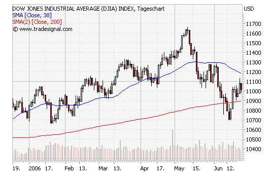 Als der Dow Jones in Gefahr lief eine SKS-Formation auszubilden, bin ich etwa zu dem Zeitpunkt als die Nackenlinie nach unten durchbrochen wurde (bei Dow Jones 11.100Pkt) raus...war zum Glück auch die richtige Entscheidung... ich bau mir zwar jetzt wieder mit ersten Positionen mein Depot auf, jedoch stell ich mir die Frage, ob es nicht doch ein wenig zu früh ist... denn: ein Dow Jones Rebound an die Nackenlinie (11.100 Pkt) wäre eine klassische Bullenfalle- daher warte ich persönlich jetzt ab, wie sich der Dow Jones weiter entwickelt...