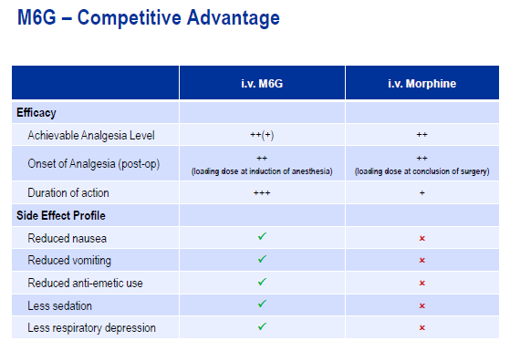 Die Gesamteinnahmen mit diesen Wirkstoffen wird auf ca. 1 Milliarde $ geschätzt. PAION schätzt die Einnahmen auf ca. 300 Millionen $ in der ersten Indikation mit M6G. Ich habe keine Ahnung, ob sie irgendwann eine Indikationserweiterung planen und so zusätzliche Einnahmen mit M6G generieren wollen.