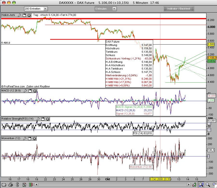 der trendkanal des heutigen hochs ist ja noch steiler, als der abwärtskanal der letzten woche. das fliegt denen voll und ganz um die ohren. am mittwoch oder donnerstag ist wieder katzenjammer und wir stehen bei 4500.