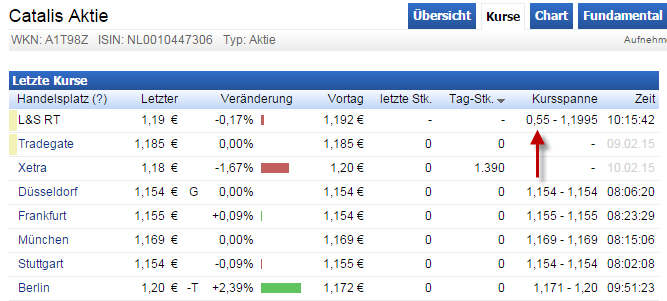 Möglich ist das natürlich bei jedem Unternehmen, sogar bei Blue Chips (Enron!). Aber bei Catalis gibt es immerhin den Großaktionär, der zahlreiche Aktien gekauft und obendrein eine Wandelanleihe (zum Wandlungskurs von 2 Euro!) gezeichnet hat. Das haben sie sicher nicht getan, ohne sich das Unternehmen genau anzusehen. Daher würde ich das von Euch erwähnte Horrorszenario bei Catalis für unwahrscheinlicher halten als bei manch anderem Unternehmen.