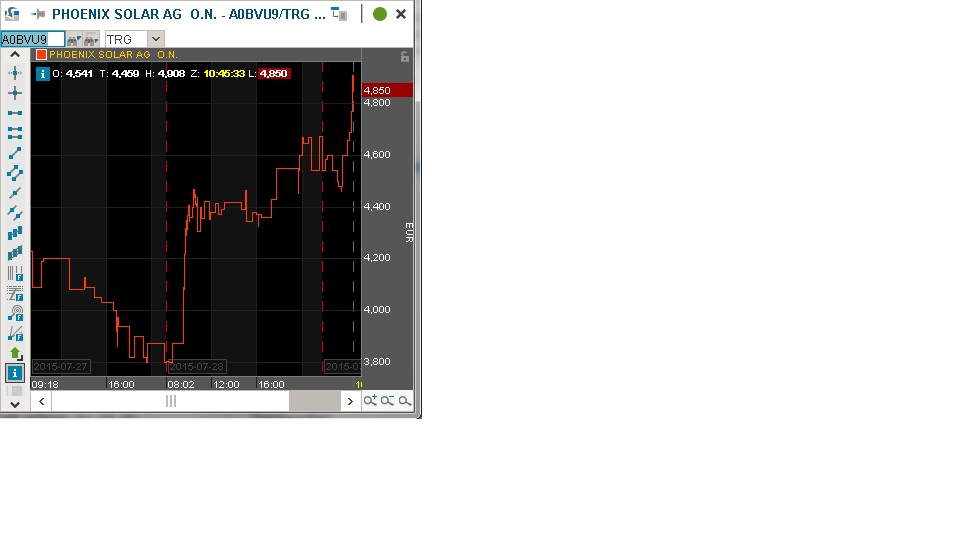 Am 16.07. war der Kurs bei 4,08 €! Heute bei knapp über 5 €, d. h. von 3,15 € ausgehend, dass ca. 41 % der Aufwärtsbewegung (Impulswelle 3) bereits erfolgt sind, weitere 59 % bis auf 7,87 € sollten folgen.