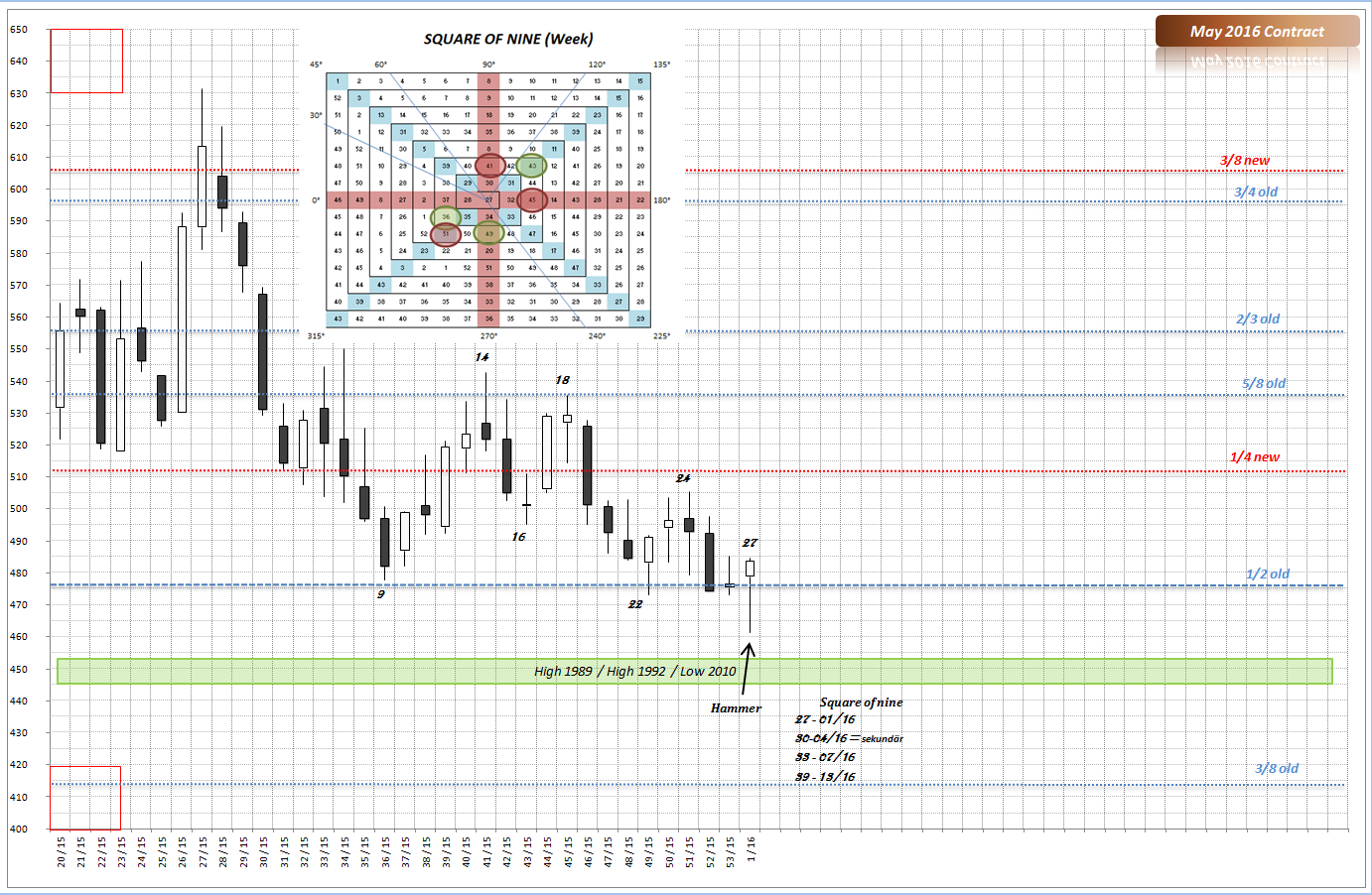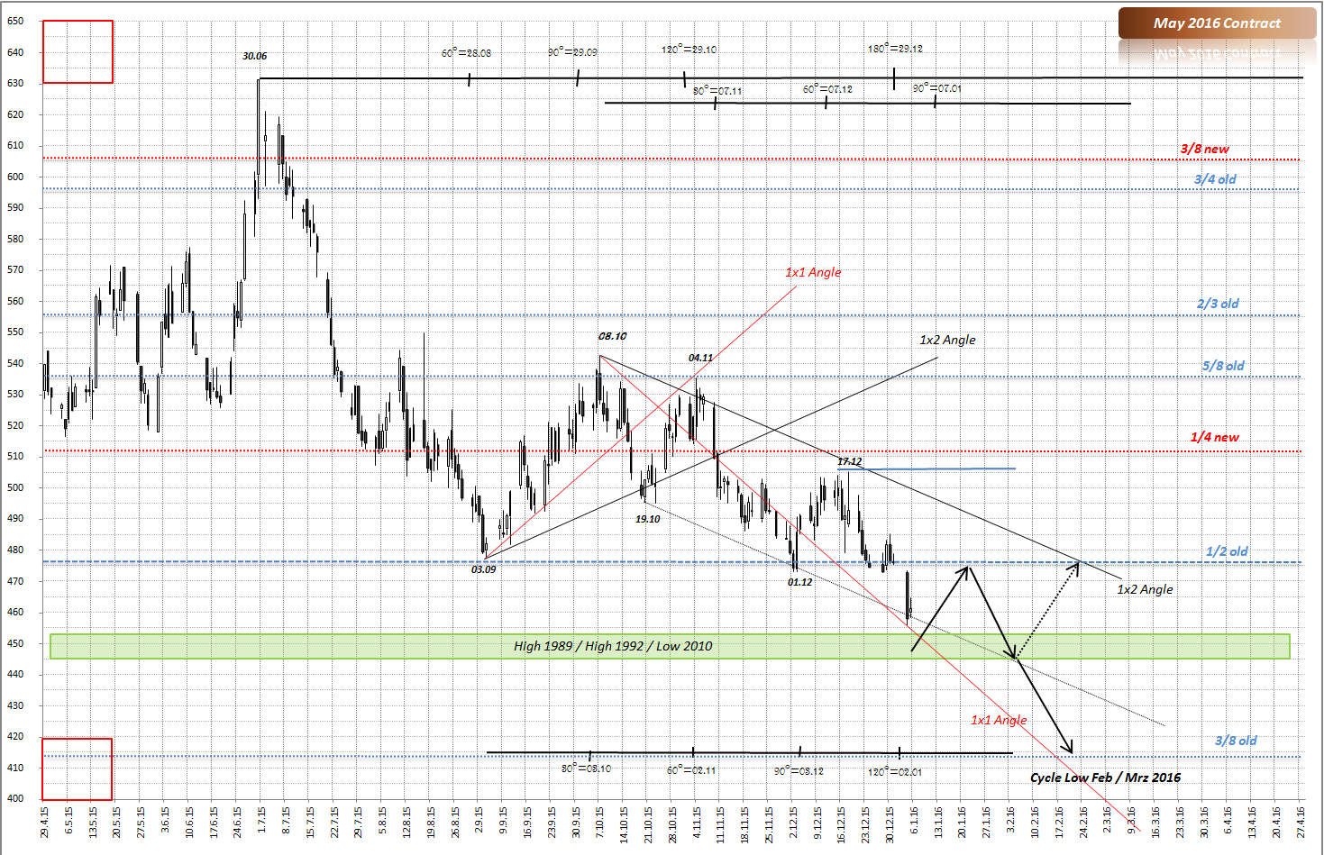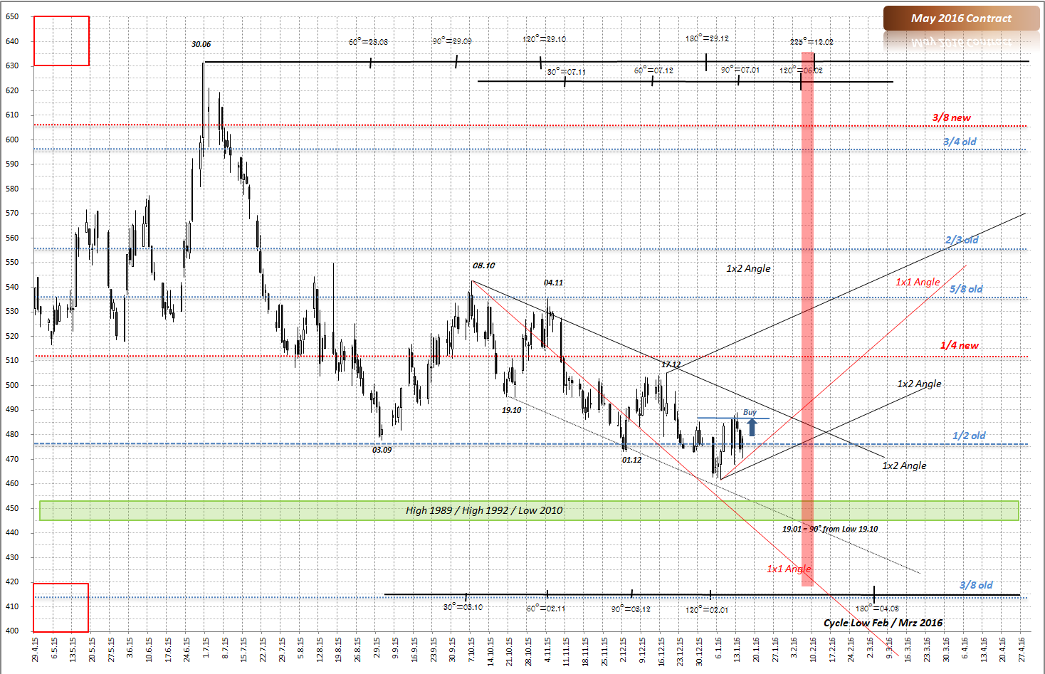 Im Tageschart aber haben wir die ersten Anhaltspunkte für den Einstieg. Für SL bietet sich Wochentief der 1. Kalenderwoche.