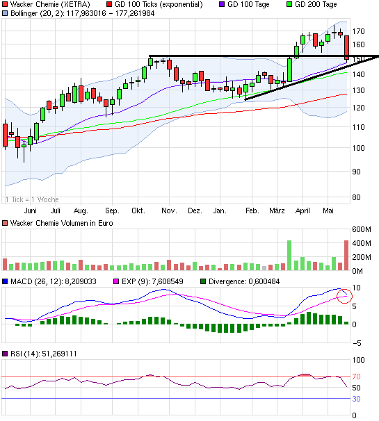 das sich Wacker jetzt gefangen hat ?? Vorgestern bei 148 war auch eine kleine Erholung bis 154, hat nicht gehalten, wollte noch ein paar nachkaufen, bin aber noch nicht sicher ob bei 140 die Wende eintritt oder wie schon jemand hier vermeldet hat, das dann doch Stpls ausgelöst werden und die Aktie noch einmal 20 e nachgibt...abwarten oder ?