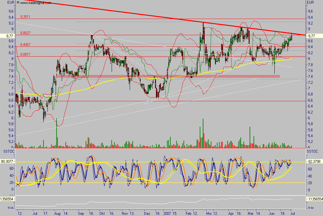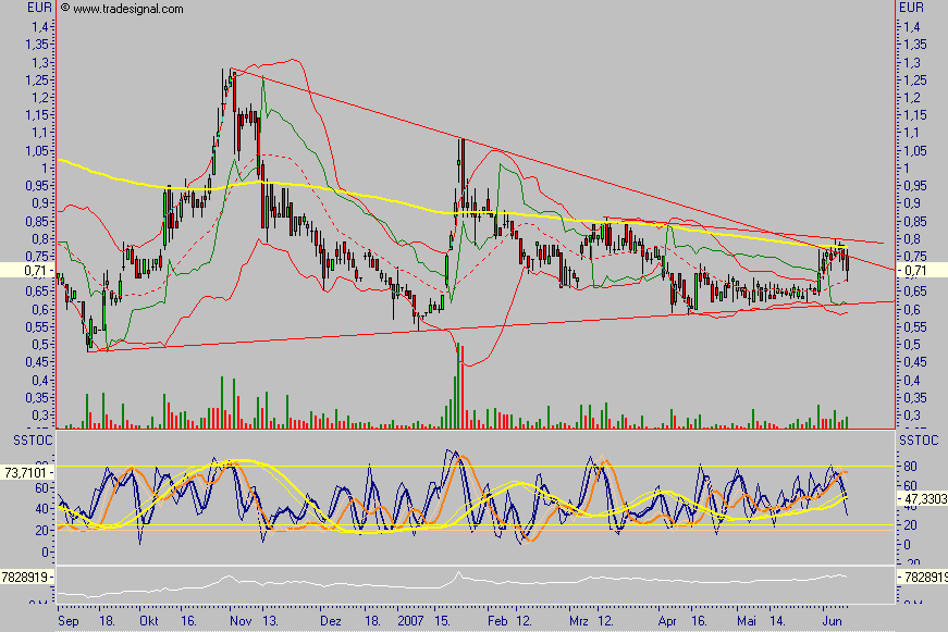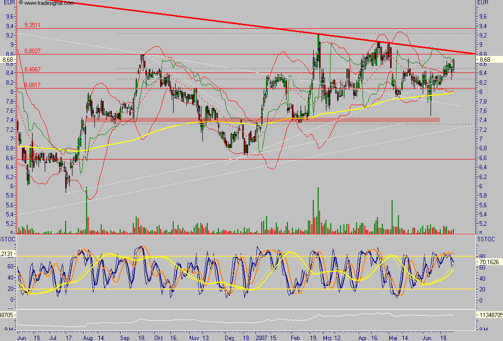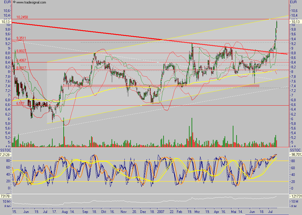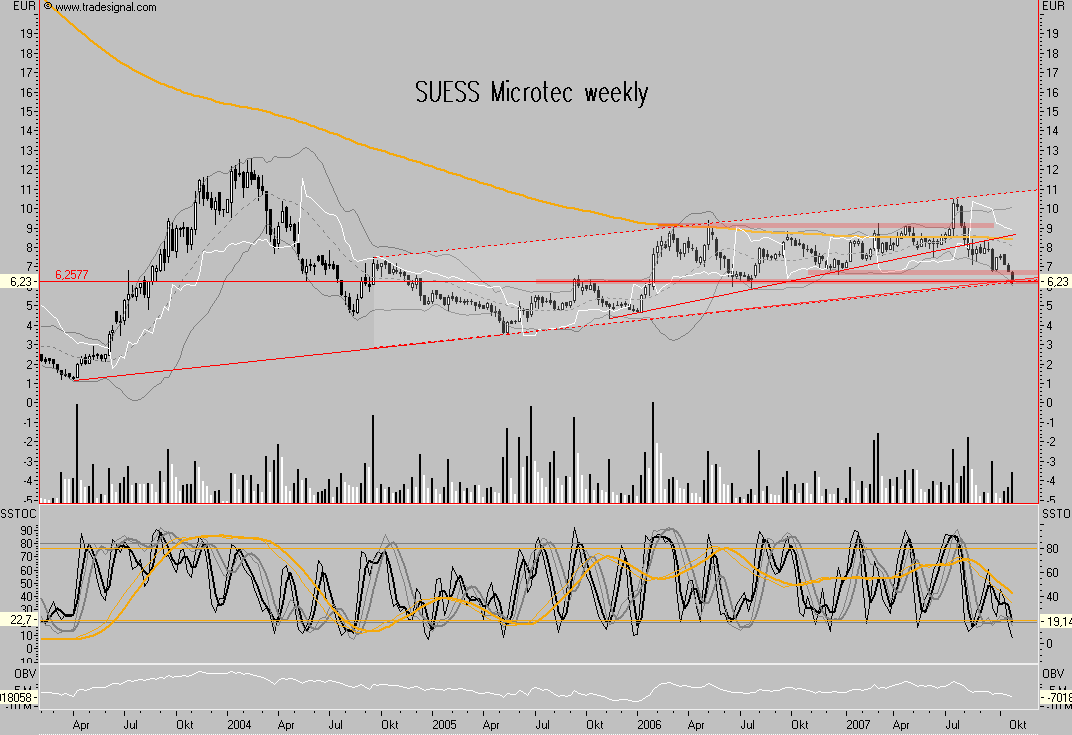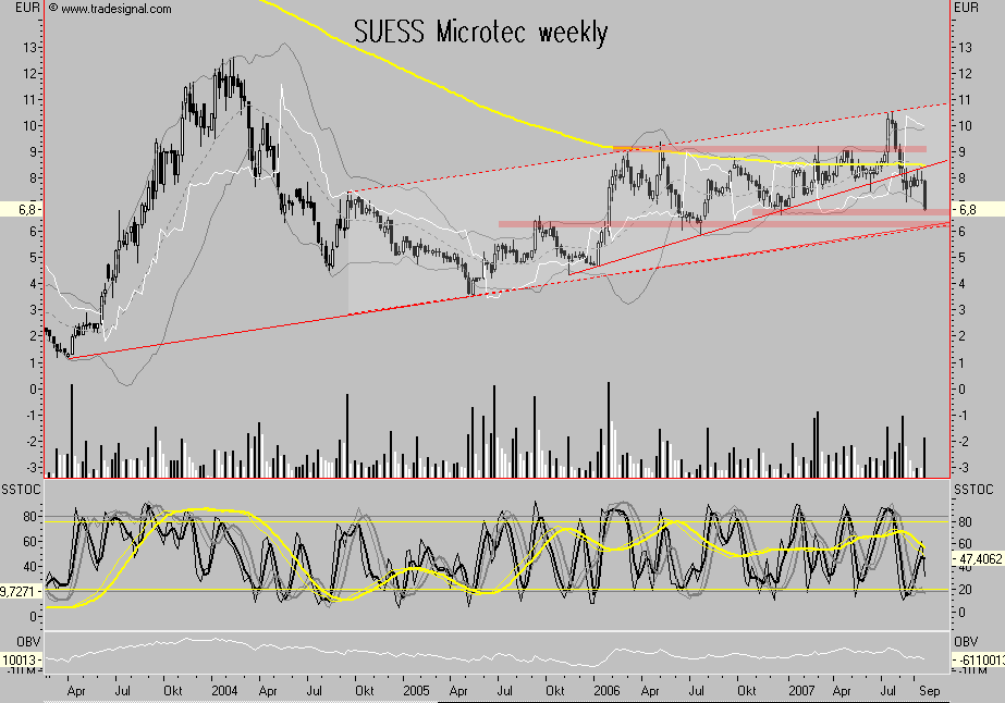 ich habe mich vor 4 Wochen von Suess getrennt, da ich hier kein Aufwärtstrent mehr gesehen habe, ich muß allerdings sagen, Suess hat mir einen netten Gewinn gebracht, ich habe mir für den Gewinn vor 4 Wochen, eine Internet Aktie gekauft wo ich mitlerweile schon 22 % Gwinn drann habe, aber dennoch finde ich die Aktie von Suess Microtec, als eine sehr gute Langfristige Anlage, ich werde mir Überlegen, ob ich nach dem Sommerloch, hier wieder einsteige.