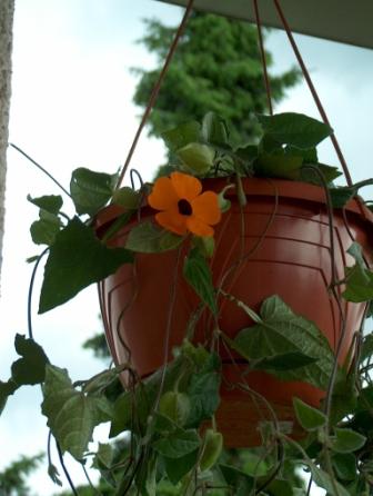 schwarzäugige Susannen in eine Ampel gepflanzt. Mal sehn, ob das später mal nach was aussieht.