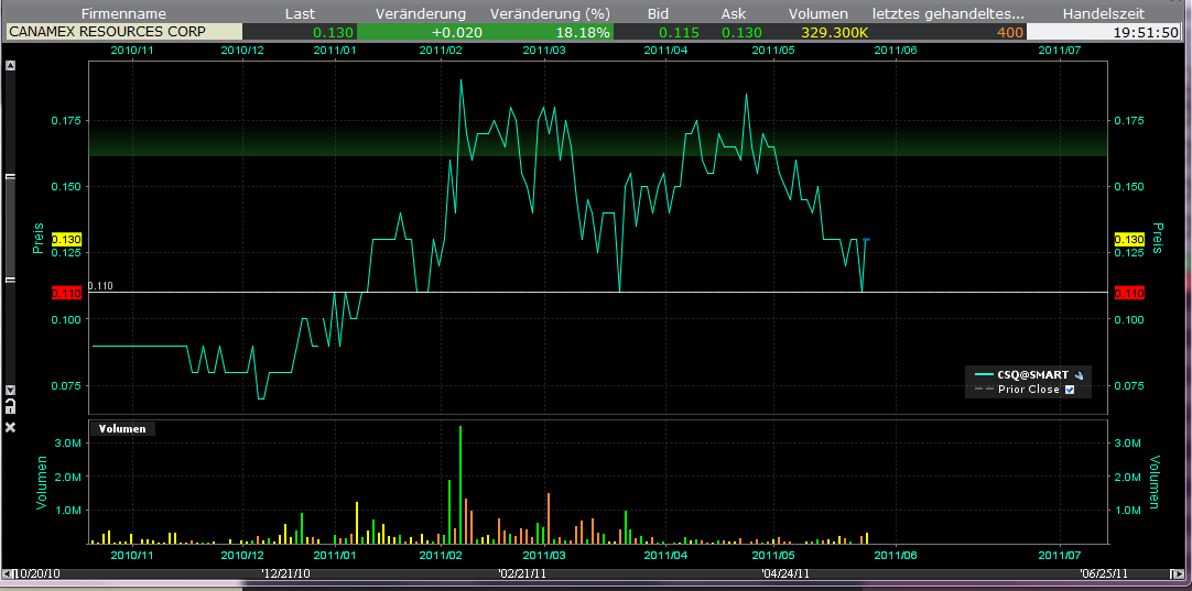 Es ist nur eine Frage der Zeit - bis Ende Mai dürfte sich Canamex oberhalb von 0.20 bewegen (Eurocent natürlich)....