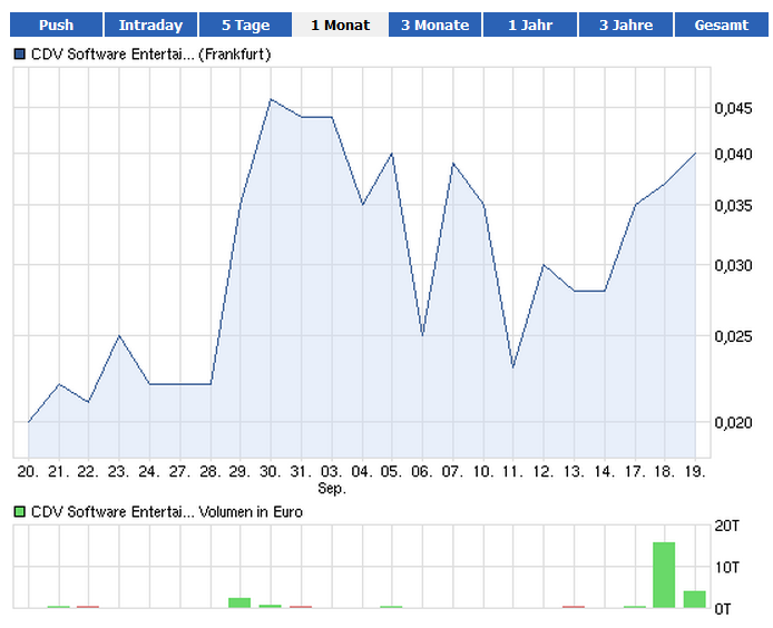 Wer einen Chart lesen kann ,der sollte jetzt m.E. besonders auf CDV Software (WKN A0MF05) achten: