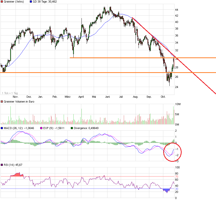 30,0-30,5 € war halt das erste technische Ziel einer Gegenbewegung. Da liegt ein harter Kreuzwiderstand.
