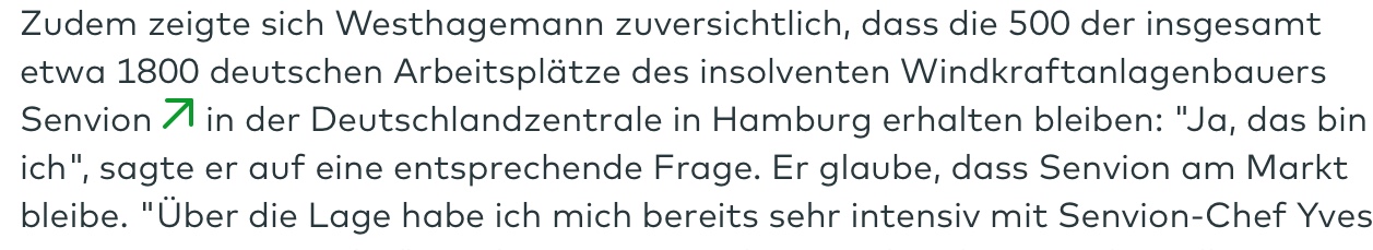 "Im Laufe der Woche werden voraussich­tlich auch die Senvion S.A., die Senvion Topco GmbH sowie die Senvion Holding GmbH Anträge auf Insolvenze­röffnung stellen."