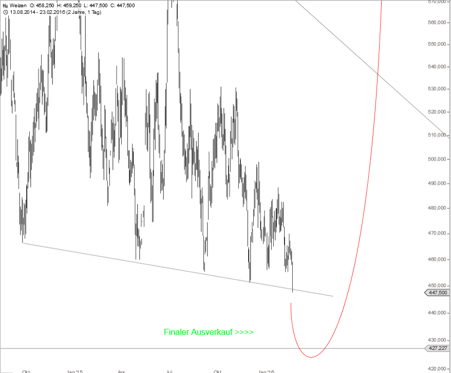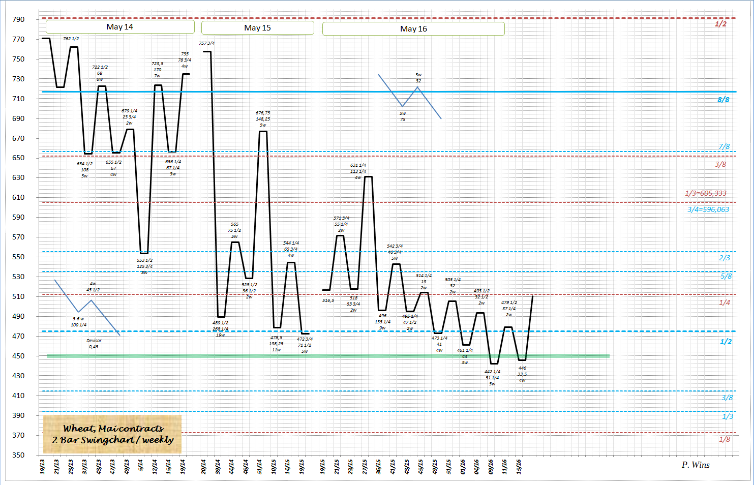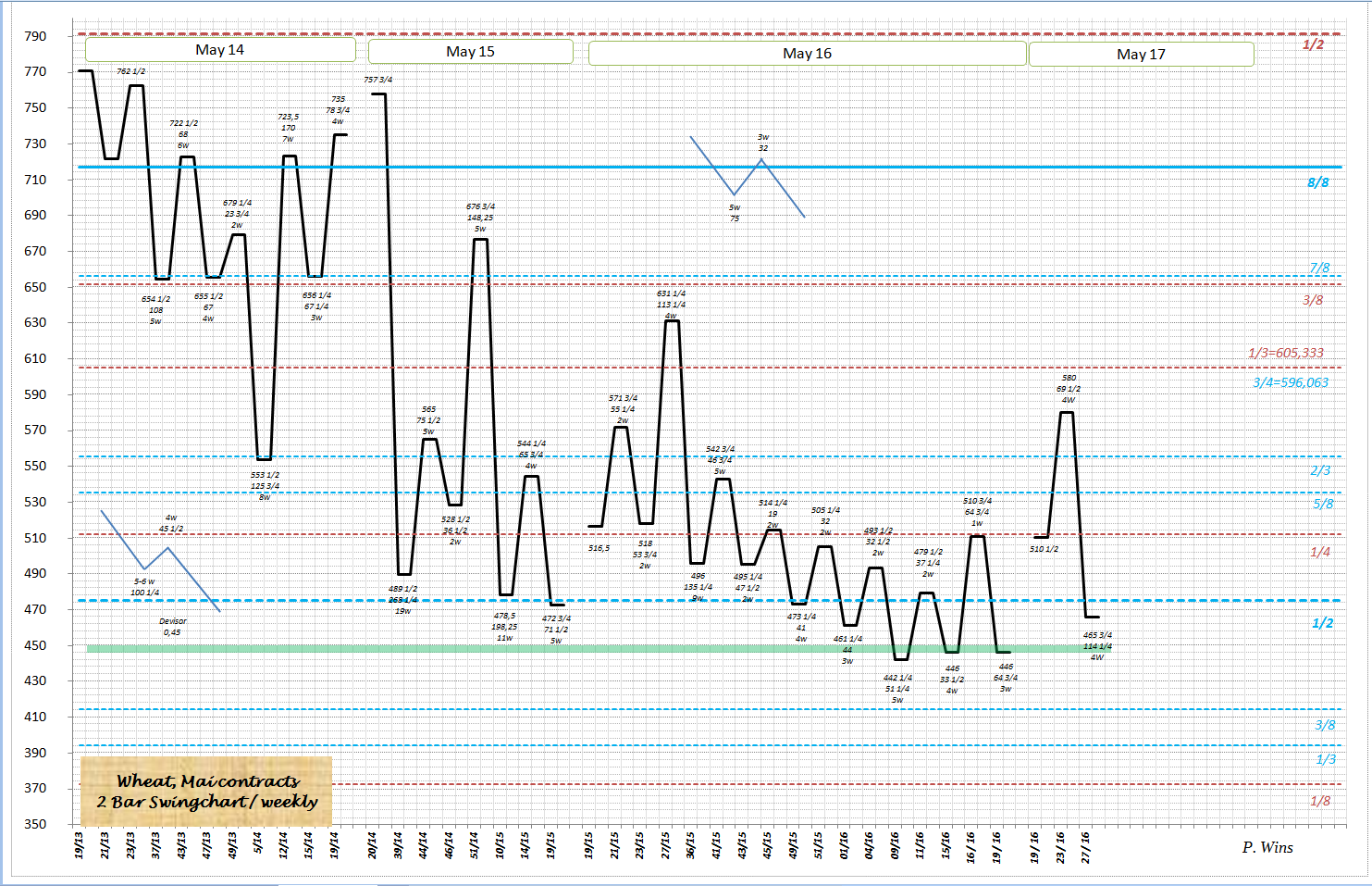 Mai 2017 Kontrakt war schon im letzten Jahr im Bereich 450 us cent und neigt sich wieder auf ungefähr diesen Bereich, daher meine Aussage: Weizenpreis verweilt in einer Seitwärtsbewegung - Bodenbildung? :-)