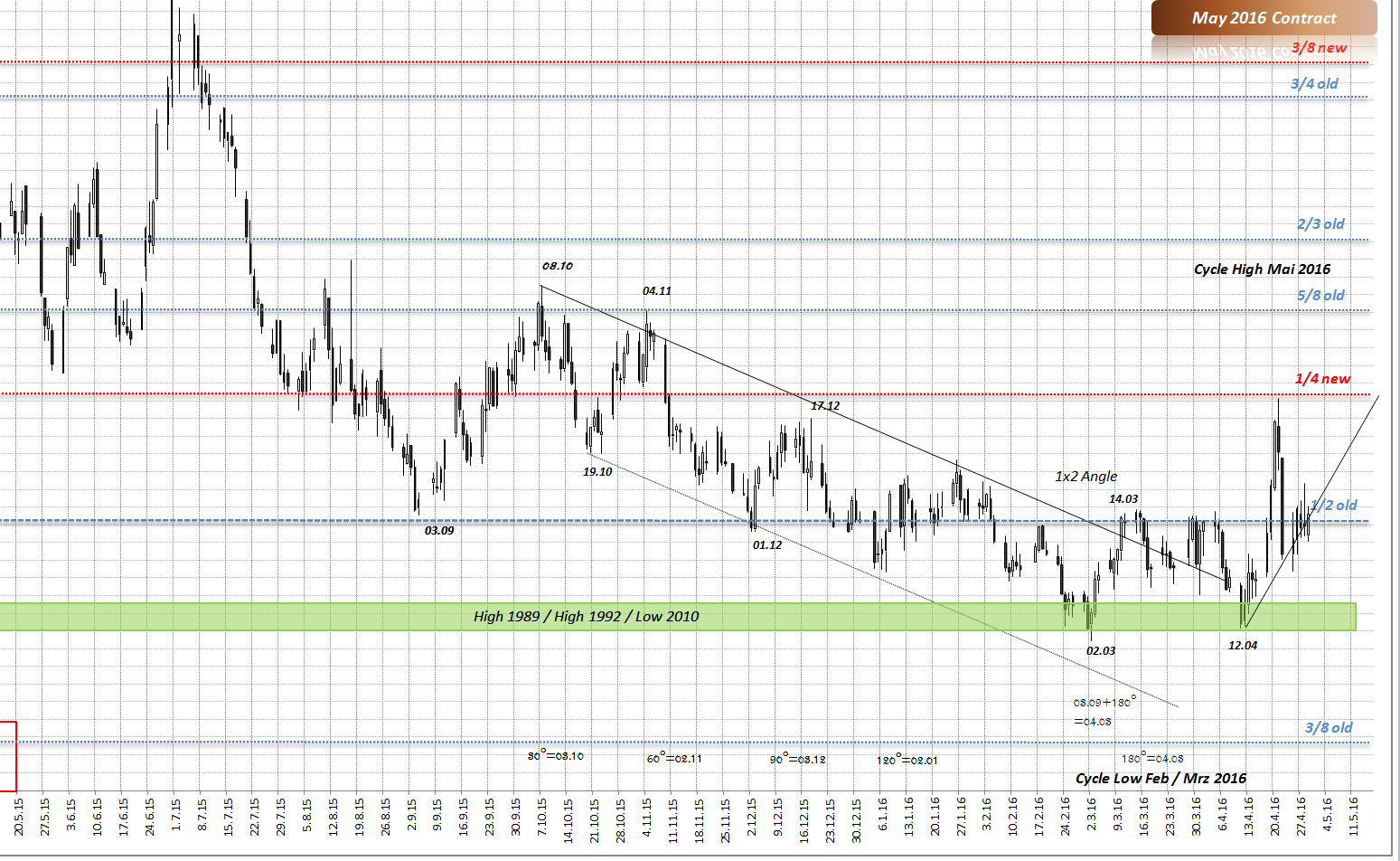 Auf diesem Niveau machte Mai Kontrakt in Jahren 1989 und 1992 ein Hoch und ein Tief im Jahr 2010. Deswegen auch jetzt kommt drauf an ob diese Unterstützung halten wird.