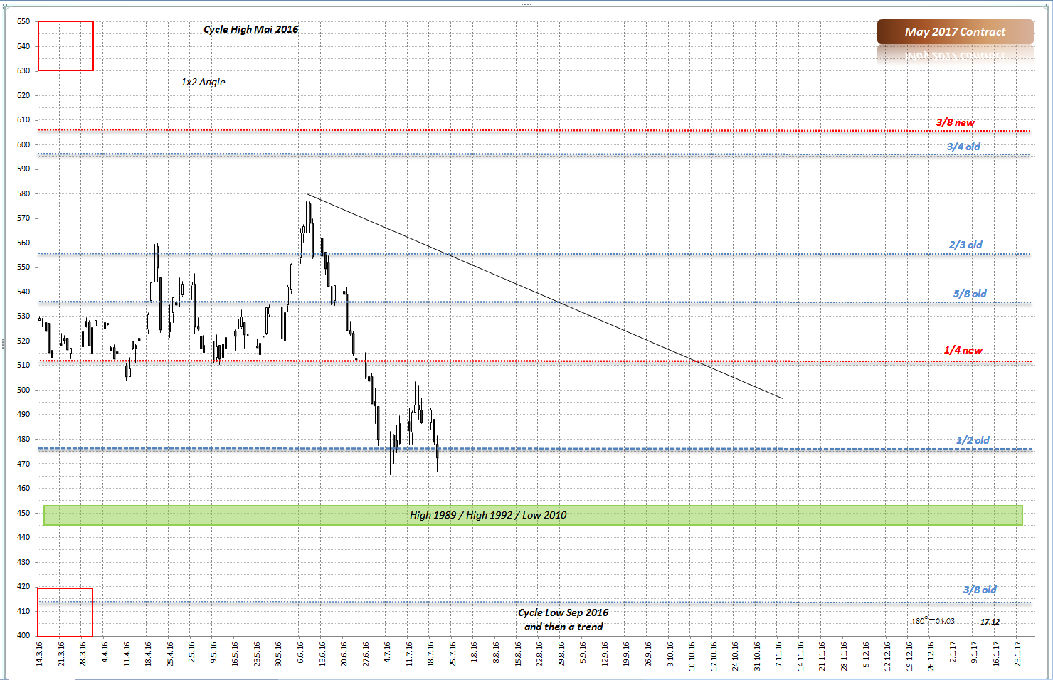 mag ich nicht sprechen, den laut Zyklen ist mit einer neuen Abwärtswelle zu rechnen, die erst im September letzten Tief erreicht, entweder auf dem Niveau von Juni/ Juli oder doch im Bereich von 450 us cent (Mai Kontrakt)