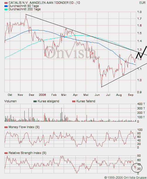 Derzeit befindet sich Catalis nämlich noch klar im mittelfristigen Abwärtstrend, der zusammen mit der 200TageLinie in diesem bereich bei 1,27-1,28 liegt. Außerdem war dort das Hoch des letzten Anstiegs.