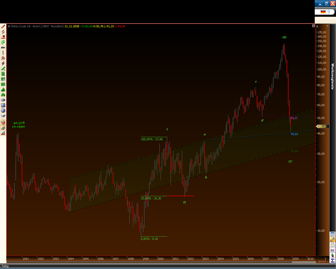 Die Kursbewgung der I wird nun als min.bewegung an das tief der II gesetz... da befinden wir uns nun genau an der 61,8% marke....