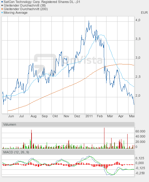 In the past 52 weeks, shares of SatCon Technology have traded between a low of $2.22 and a high of $5.51 and are now at $2.87, which is 29% above that low price.