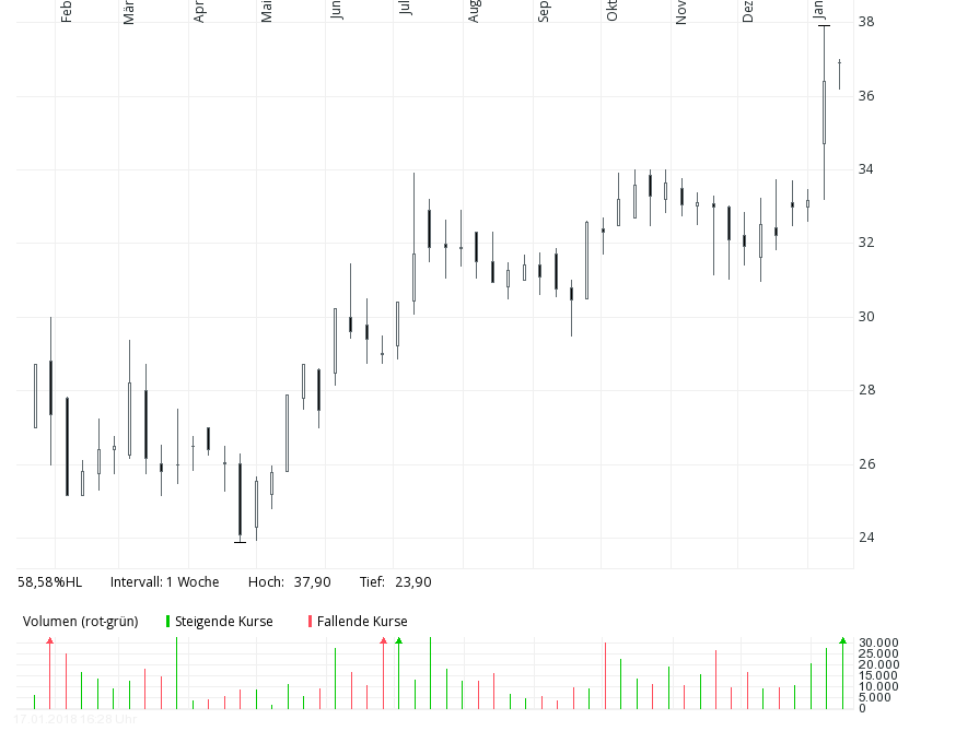 Ende März dann mit dem Abschluss dann wohl auch ein Ausblick für 2018 und womöglich mit der Dividendenmöglichkeit für 2019 glaube ich, dass es mehr Auswirkung auf das Kaufverhalten der Anleger haben könnte.