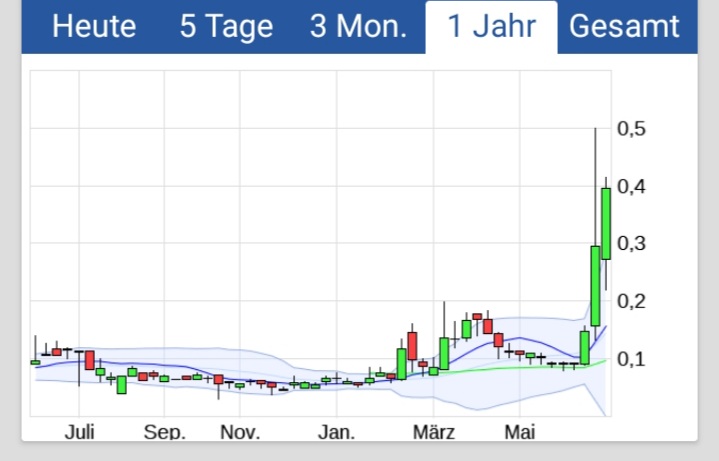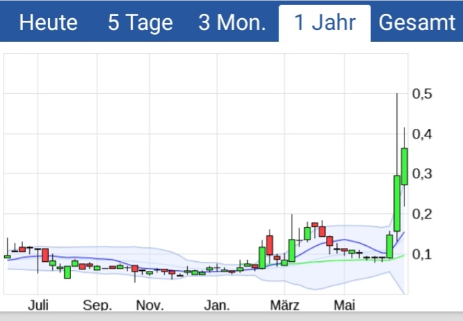 Kaufvolumen nimmt auch wieder zu. Ein Tagesschlusskurs über 0,50€ wäre ein Vorlage nach Bilderbuch für die nächste Handelswoche.