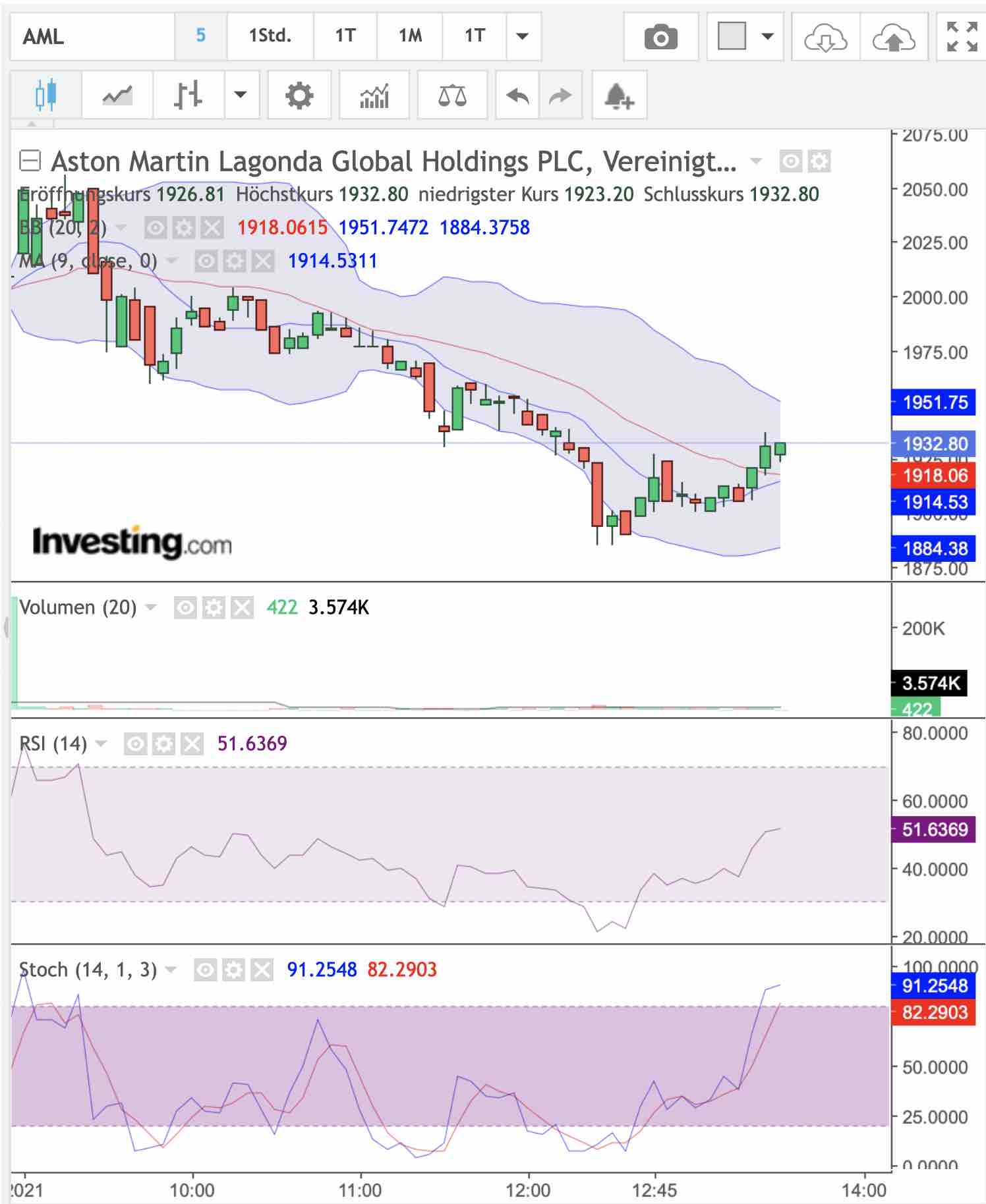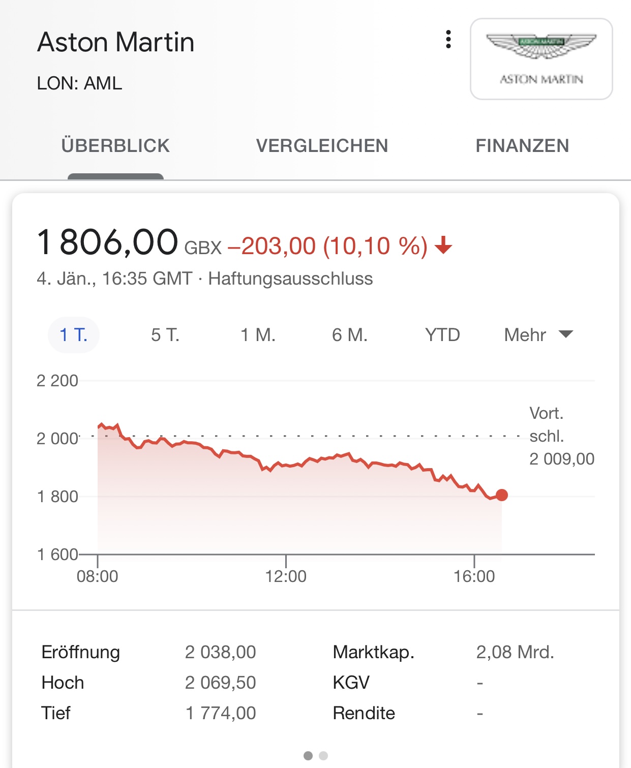 Das ist sogar für Aston Martin heftig, wenn man von Intraday-Hoch zum Intraday-Tief mehr als 3 Pfund verliert. Dass bei 20 Pfund Gewinnmitnahmen kommen, hatte ich erwartet, aber nur so bis 19 Pfund.