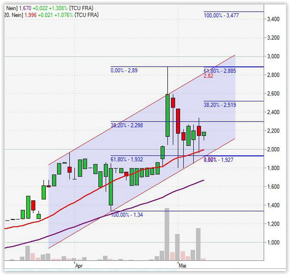 Der Au8fwärtstrendkanal lässt sich aber nicht weg