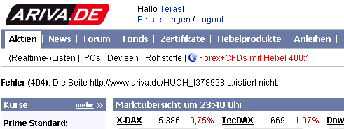"Fehler (404): Die Seite http://www.ariva.de/HUCH_t378998 existiert nicht".